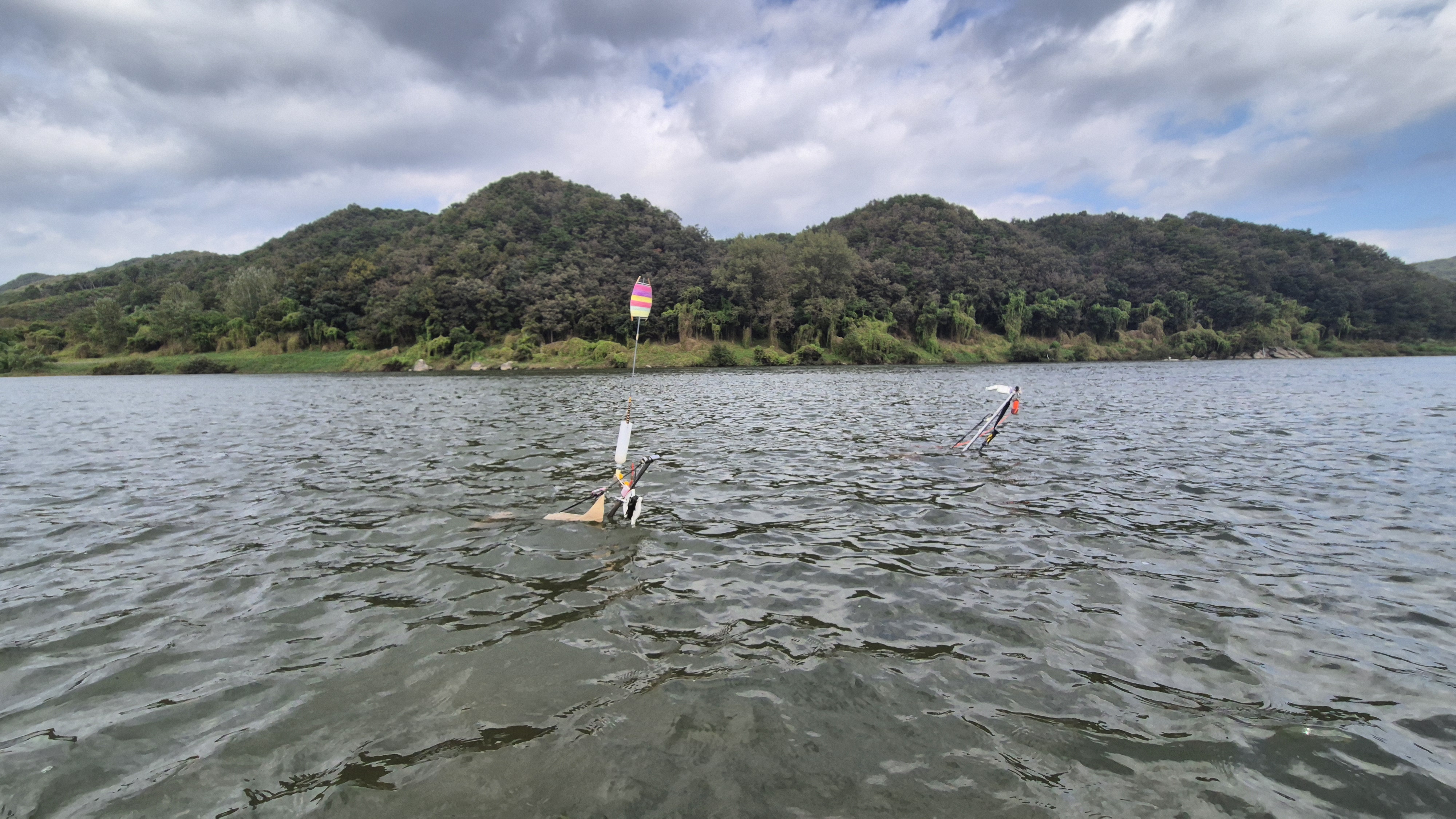 동트기 직전에 조정지에 도착하니 한분이 수장대를 미리 박아 놓고 다른 분은 없다.